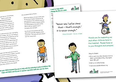 A charity that’s doing worthwhile work living up to its name. This 6-page roll-fold brochure is one of a range of different items (including newsletters and Christmas cards) that we produce for them throughout the year.